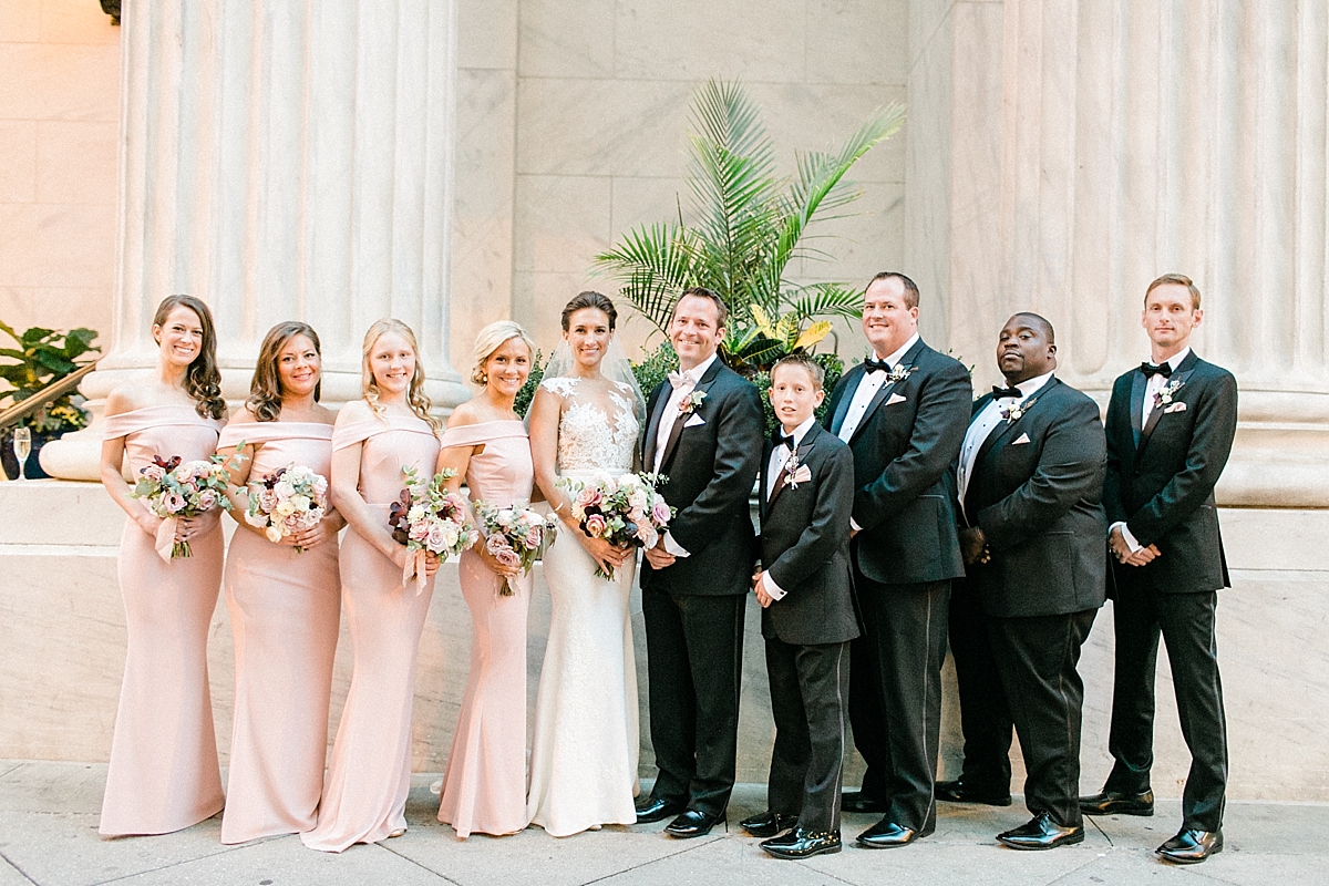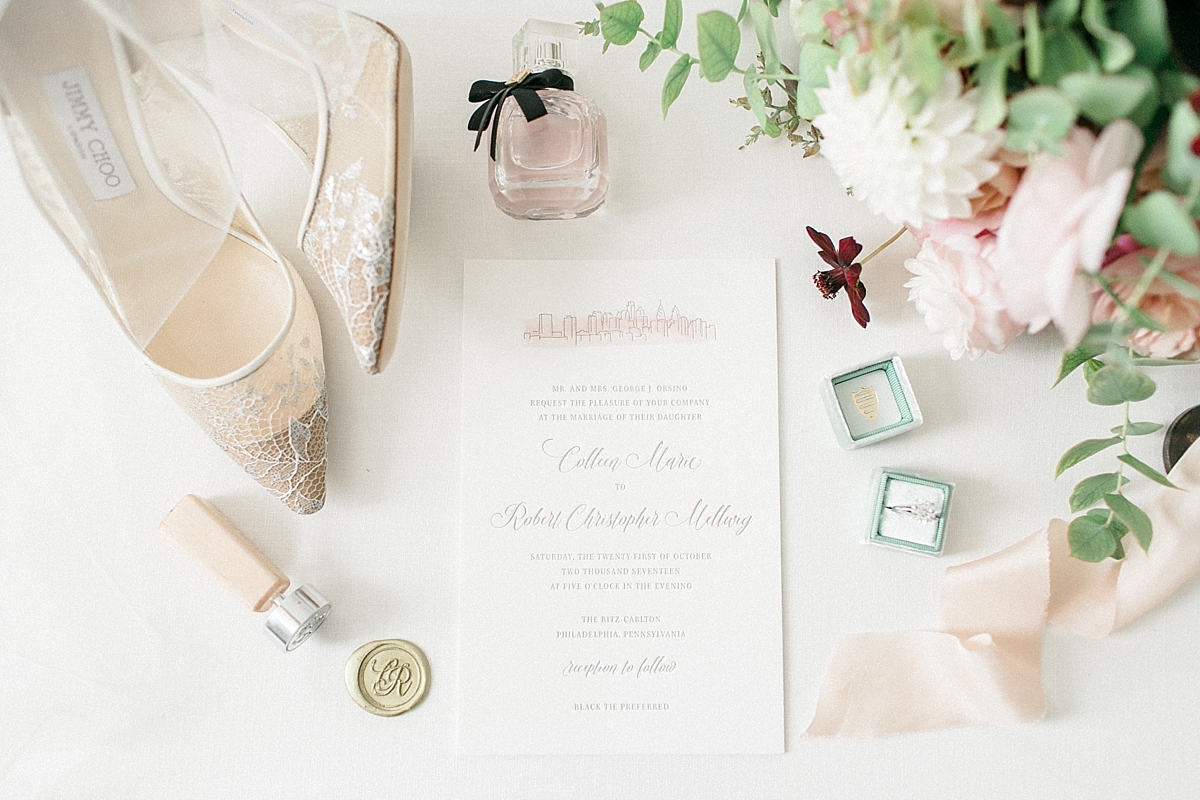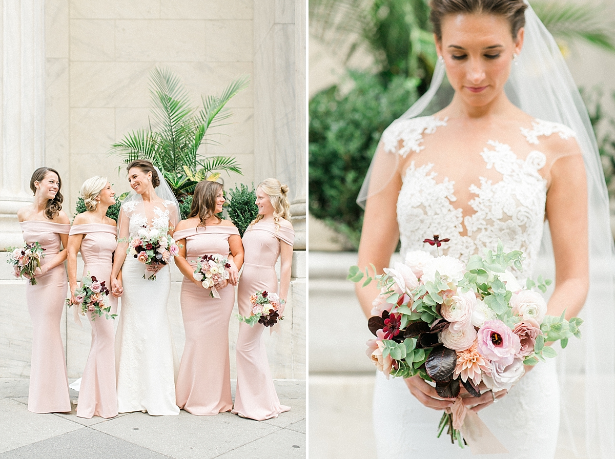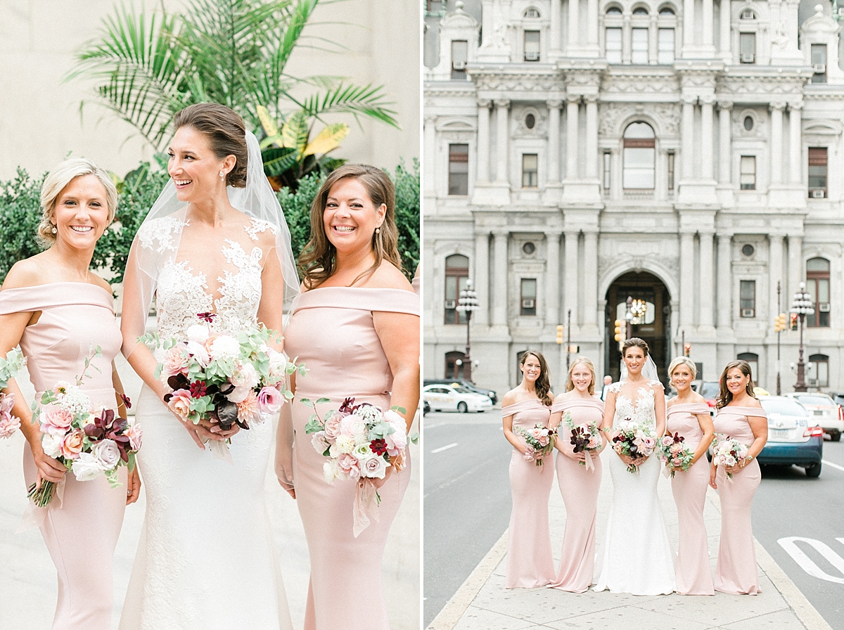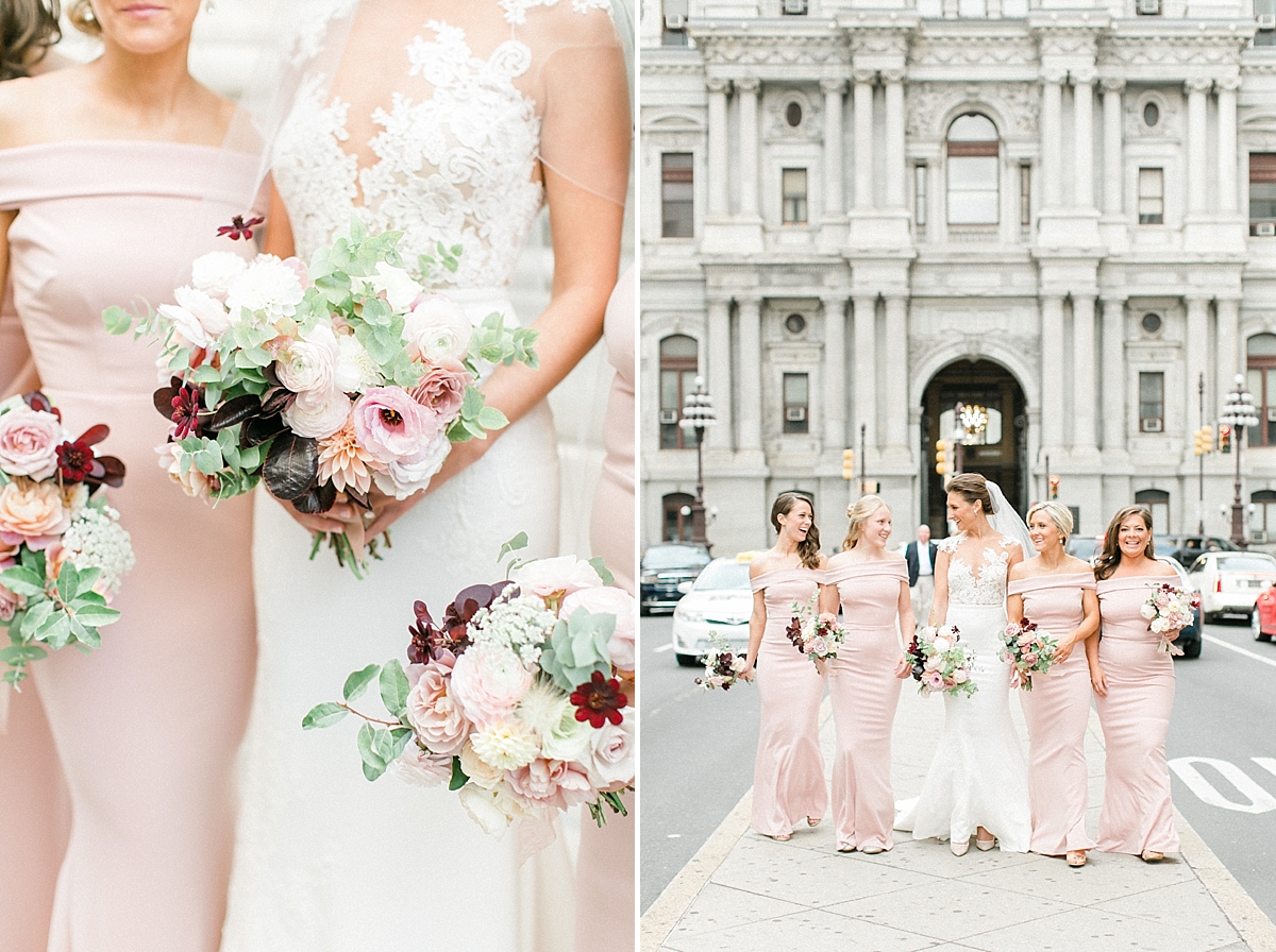 This October wedding exuded elegance and romance! Colleen and Robert chose to have their celebration at the Ritz Carlton Philadelphia, which is near the heart of the city. Dusty rose, dark greens, and golds sprinkled its way across from the bouquets, invitations, center pieces, and dresses. The men looked handsome in a classic tux while the bridesmaids wore nicely fitted dusty rose gowns. And of course, we can’t forget the Bride! Who looked stunning from head to toe in her Pronovias gown. The entire bridal party belonged on the runway!