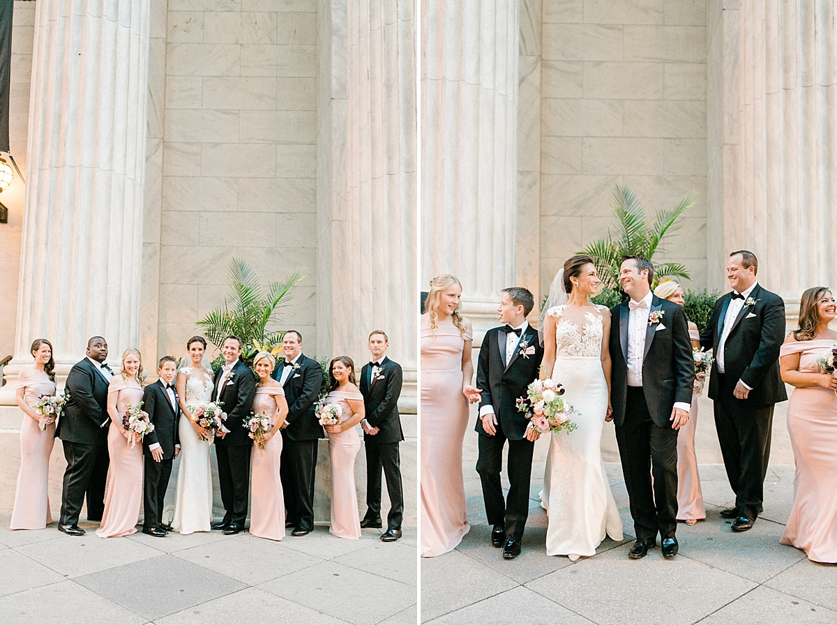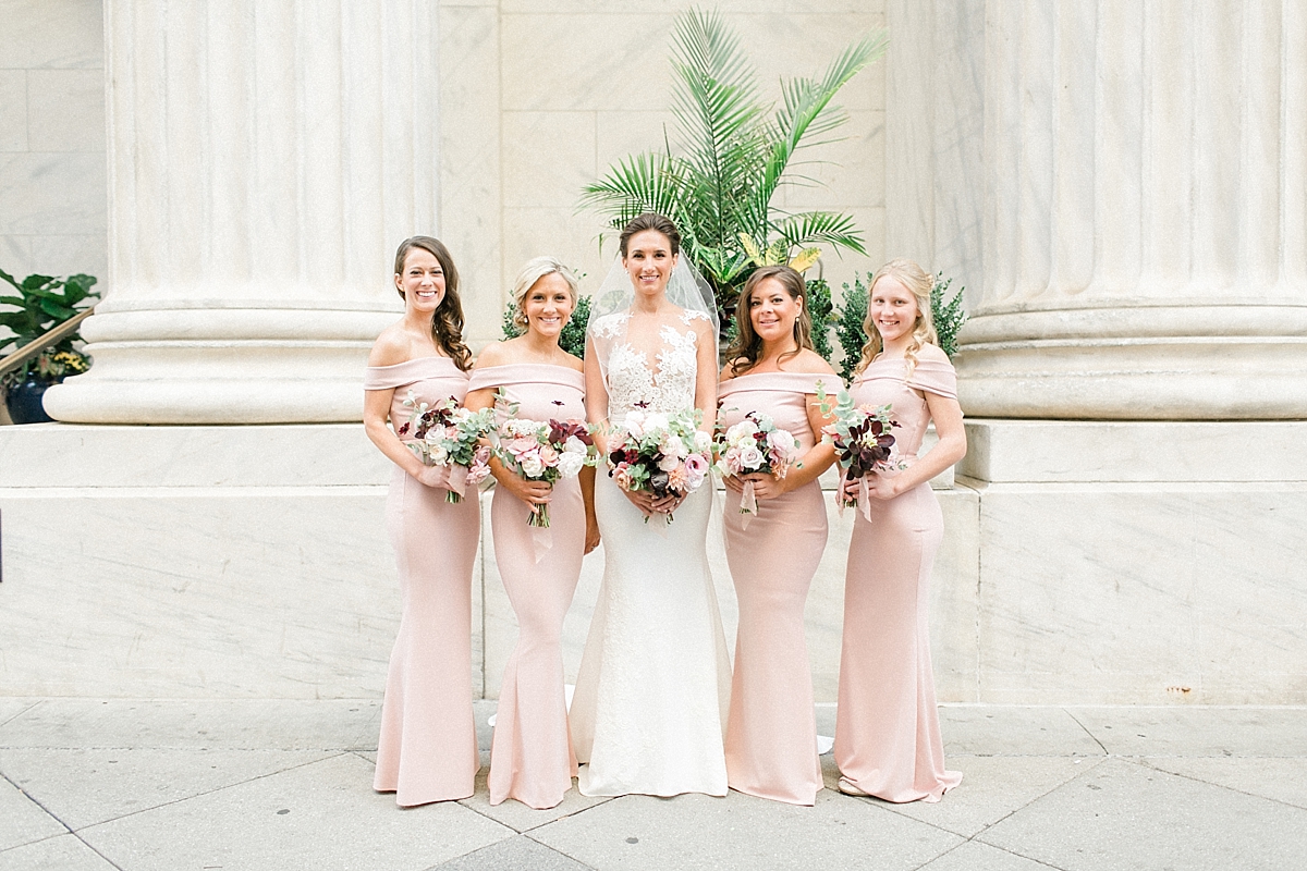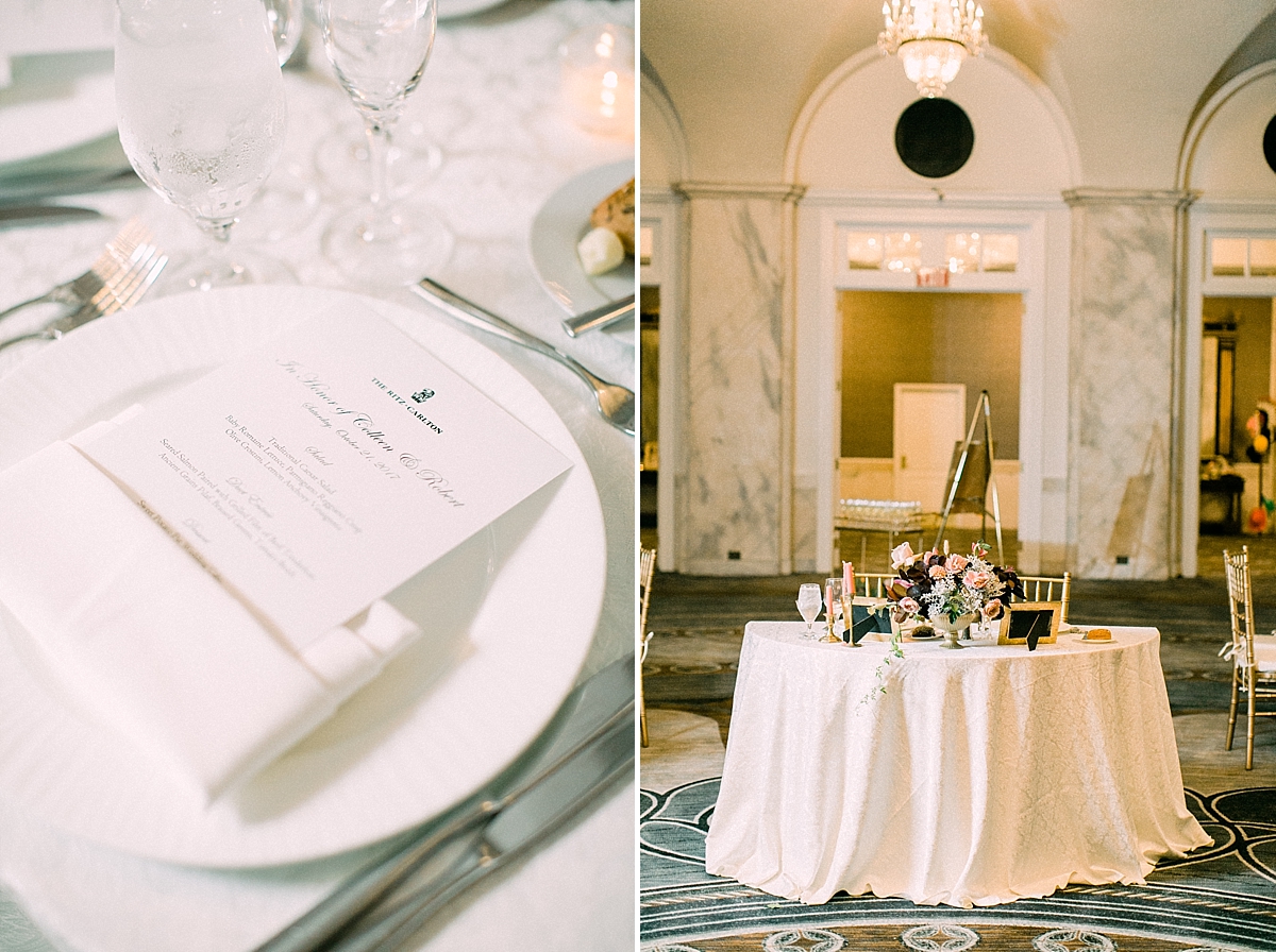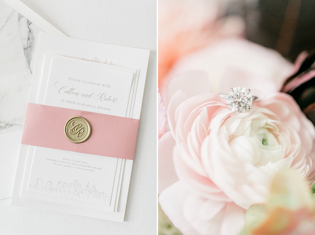 This October wedding exuded elegance and romance! Colleen and Robert chose to have their celebration at the Ritz Carlton Philadelphia, which is near the heart of the city. Dusty rose, dark greens, and golds sprinkled its way across from the bouquets, invitations, center pieces, and dresses. The men looked handsome in a classic tux while the bridesmaids wore nicely fitted dusty rose gowns. And of course, we can’t forget the Bride! Who looked stunning from head to toe in her Pronovias gown. The entire bridal party belonged on the runway!