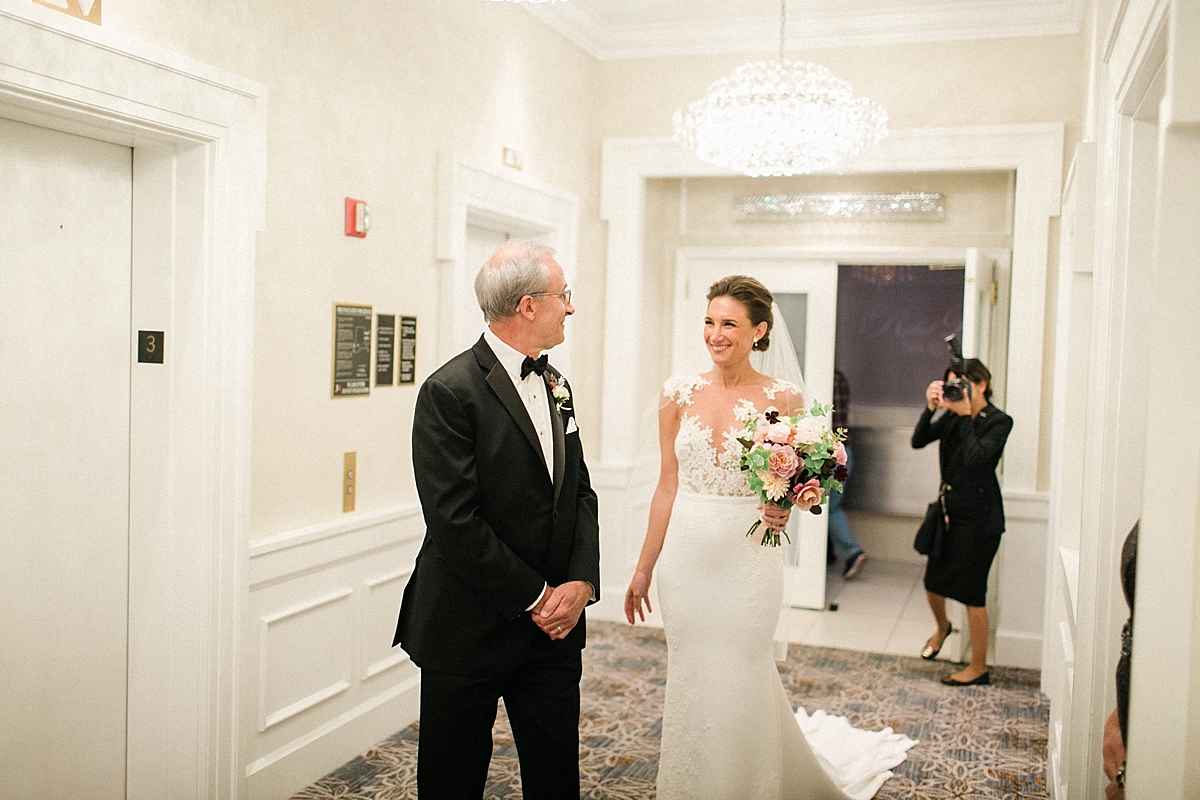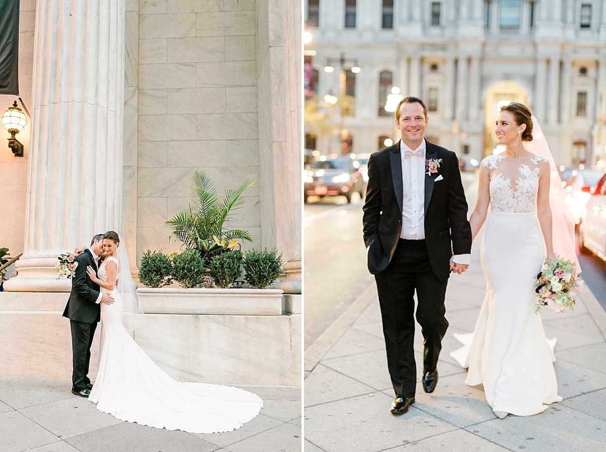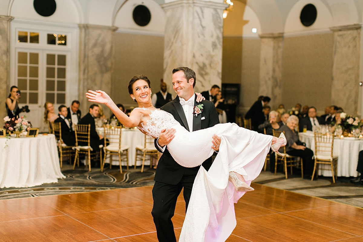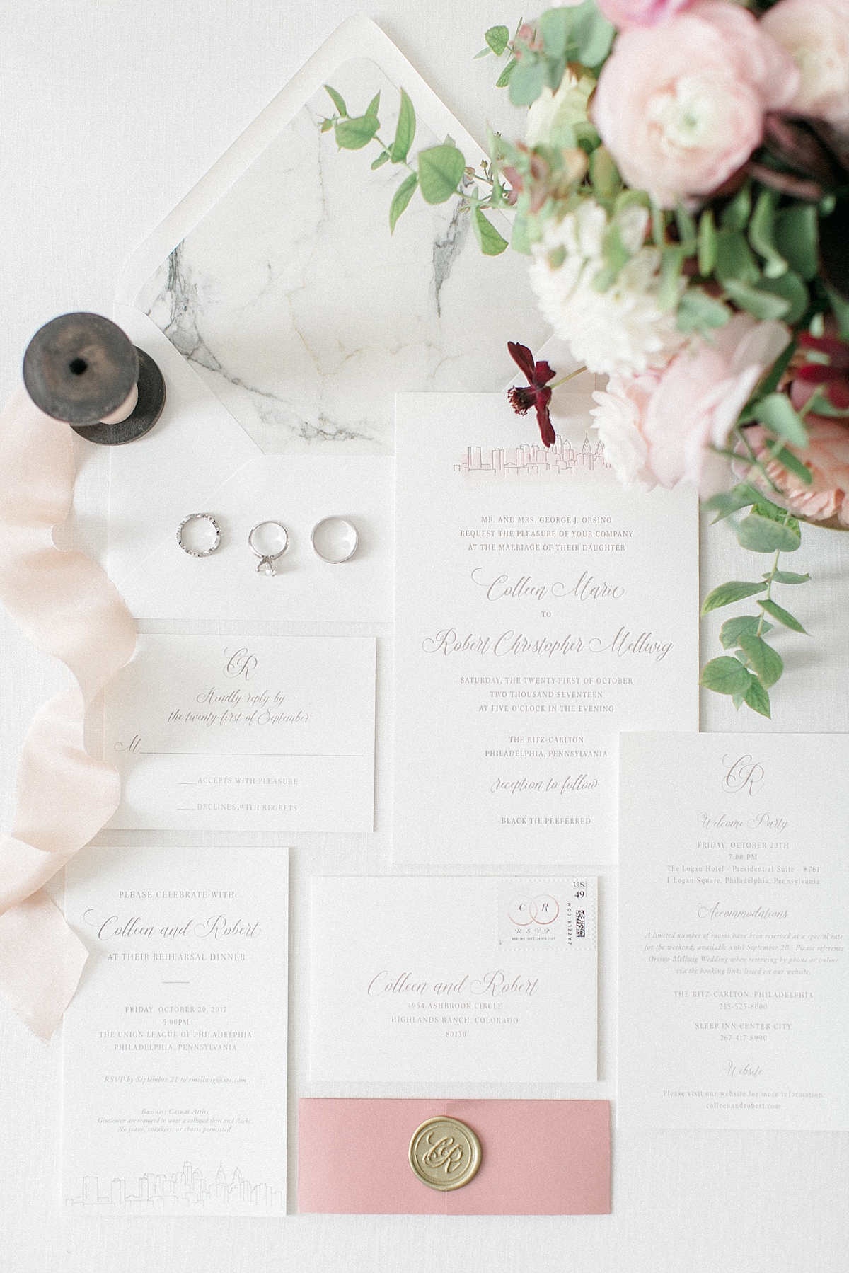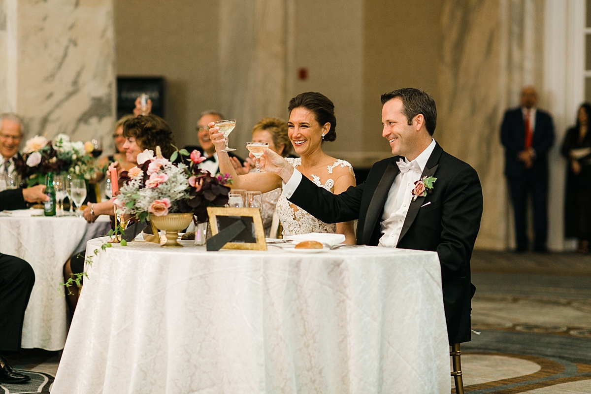 This October wedding exuded elegance and romance! Colleen and Robert chose to have their celebration at the Ritz Carlton Philadelphia, which is near the heart of the city. Dusty rose, dark greens, and golds sprinkled its way across from the bouquets, invitations, center pieces, and dresses. The men looked handsome in a classic tux while the bridesmaids wore nicely fitted dusty rose gowns. And of course, we can’t forget the Bride! Who looked stunning from head to toe in her Pronovias gown. The entire bridal party belonged on the runway!