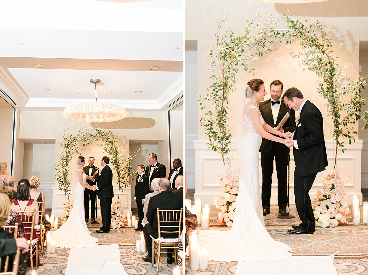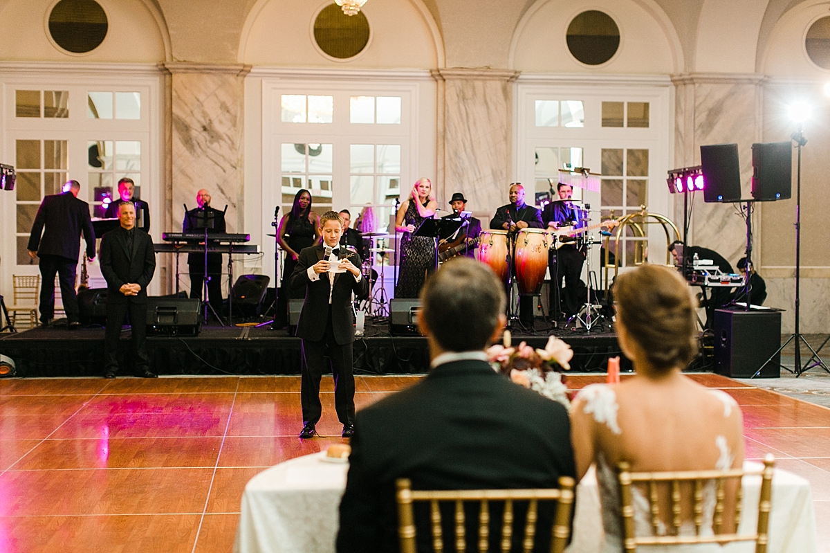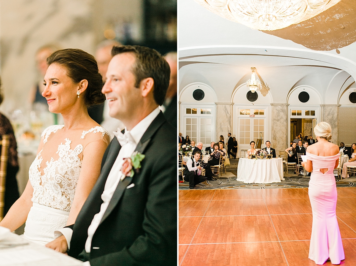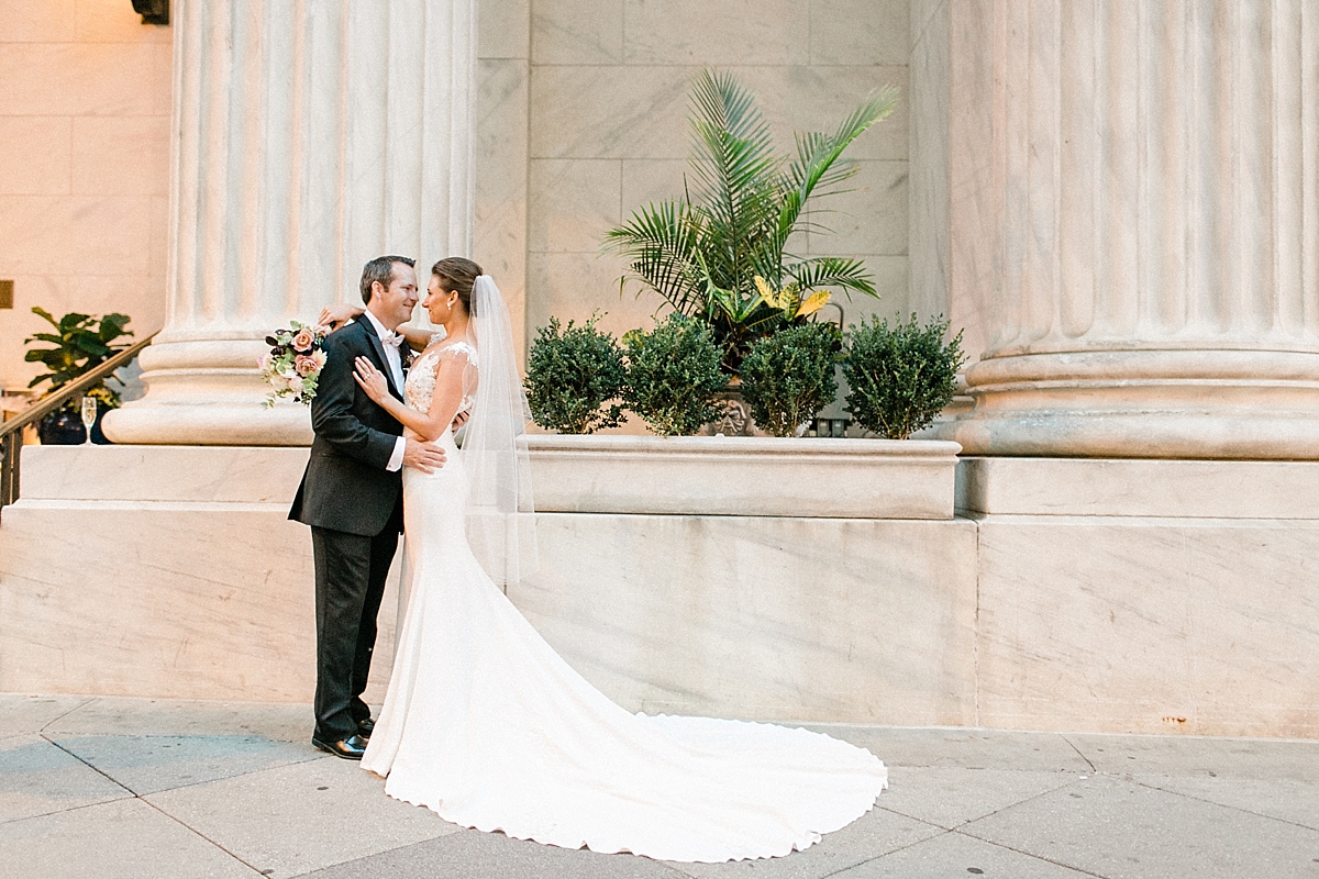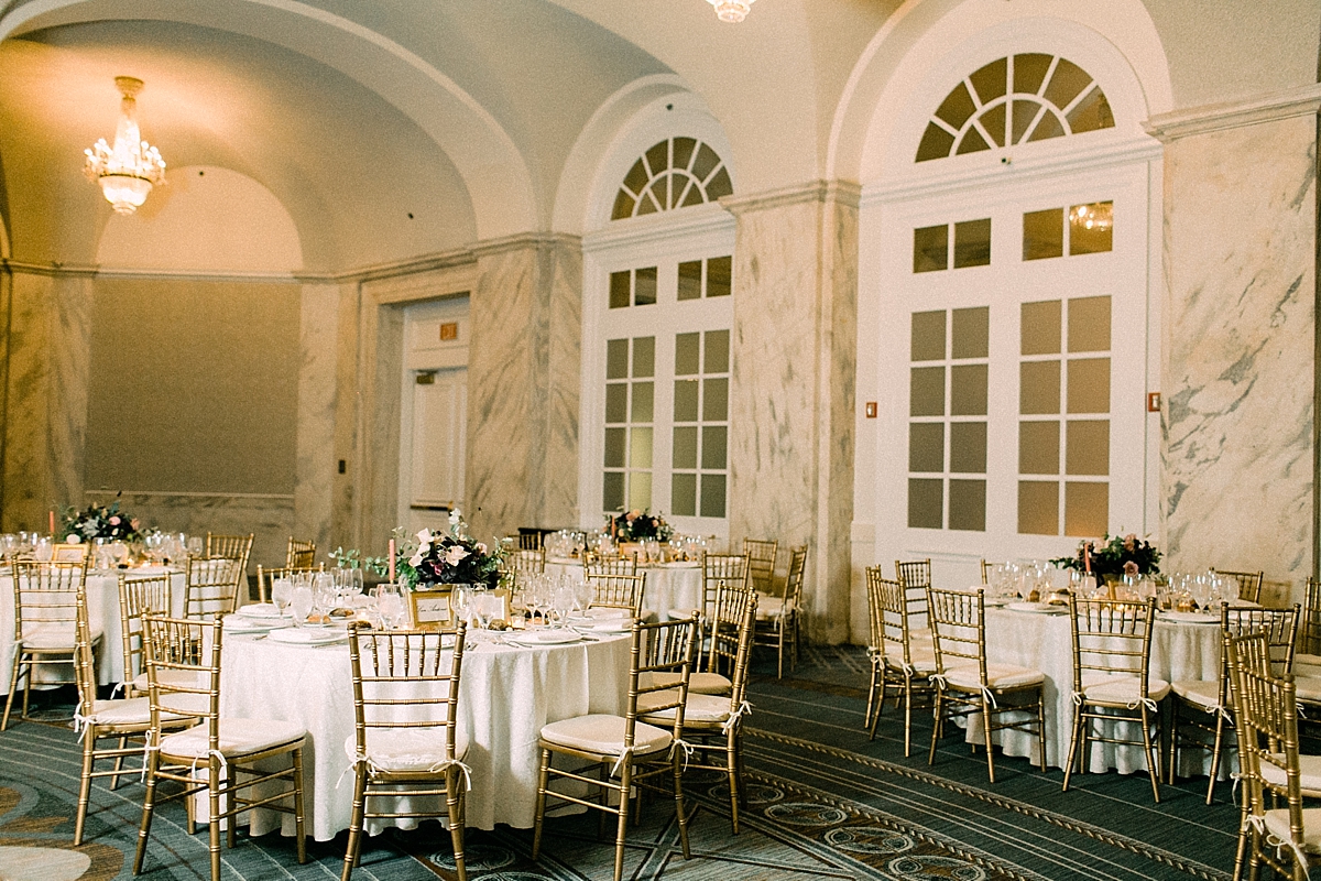 This October wedding exuded elegance and romance! Colleen and Robert chose to have their celebration at the Ritz Carlton Philadelphia, which is near the heart of the city. Dusty rose, dark greens, and golds sprinkled its way across from the bouquets, invitations, center pieces, and dresses. The men looked handsome in a classic tux while the bridesmaids wore nicely fitted dusty rose gowns. And of course, we can’t forget the Bride! Who looked stunning from head to toe in her Pronovias gown. The entire bridal party belonged on the runway!